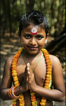 Front view kid celebrating tamil new year