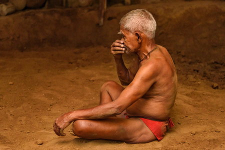 Kolkata, India - March 14, 2019: Kushti wrestler on daily trainining in akhara. Kushti or Pehlwani is traditional form of wrestling in India.