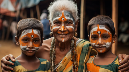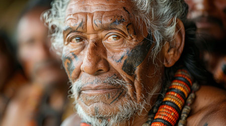 Portrait of indigenous tribe. Traditional Indians with painted faces. Native american people. Created with Generative AI