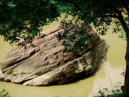 River water stone rocks presentation down the fallen leaves tree frame.