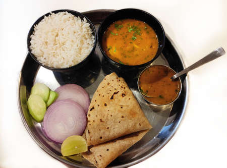 Authentic Maharashtrian lunch thali with Amras and poli, India