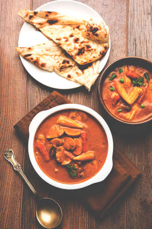 Indian Baby Corn Masala or spicy Baby corn curry served with roti or naan or indian bread