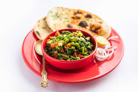 palak matar curry also known as spinach geen peas masala sabzi or sabji, indian food