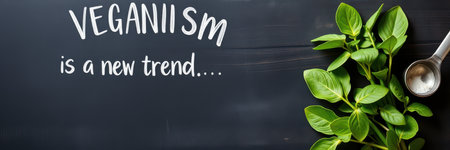 chalkboard with fresh green leafy vegetables with the word vegan written down