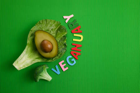 Word VEGAN made of lettuce leaves.
