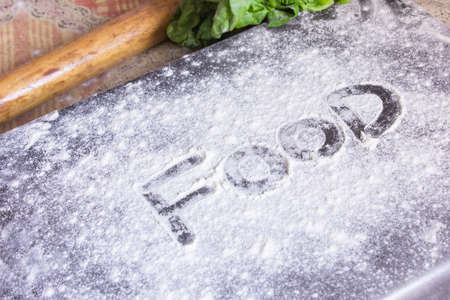flour and floured vegetables on kitchen table. dirty work surface while cooking