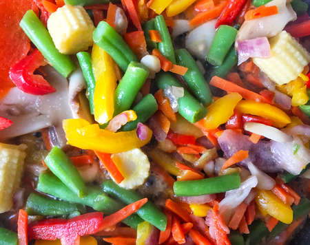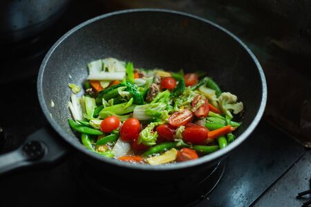 Fresh vegetables fried in the pan.