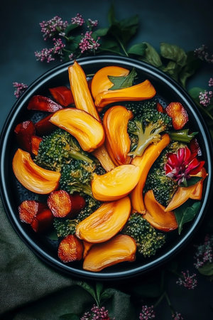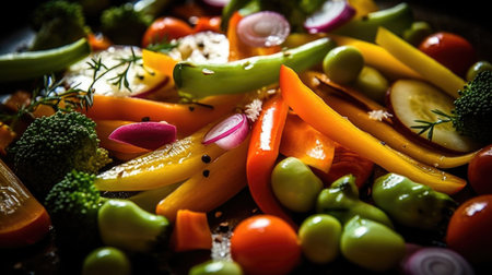 AI Generated. Fresh and Flavorful Vegetable Dish with Herbs and Spices in Dark Bowl