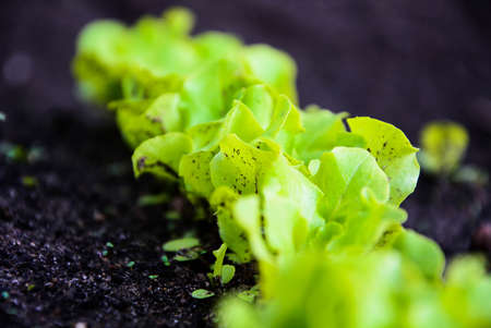 Lettuce garden close up view. Healthy organic nutrition cultivated in the soil.