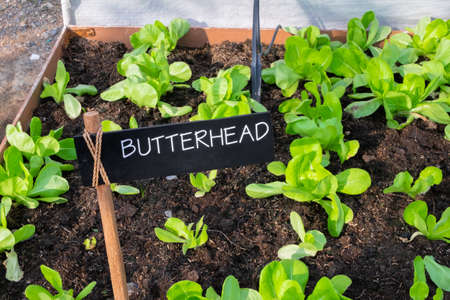butterhead plant in backyard, Organic vegetables are grown in plots, fresh salad, healthy food.