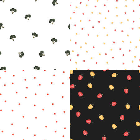 Design with broccoli, bell pepper, and cherry tomatoes. Natural organic food. Wallpaper and fabric design.