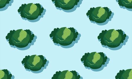 Seamless blue background with kale heads with shadow. Vector vegetables illustration design for template.