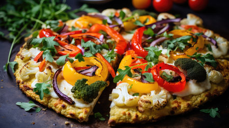 Veggie Pizza with Cauliflower Vegetables Vegetarian Healthy Food