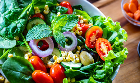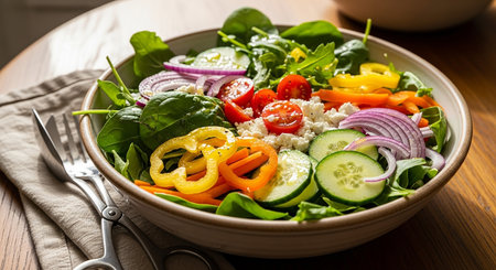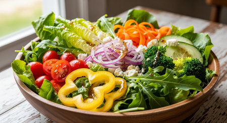 Indulge in a healthy and delicious salad bowl. Perfect for diet enthusiasts. Generative AI masterpiece.