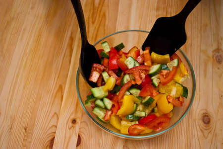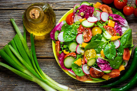 Fresh vegetable salad on wooden background