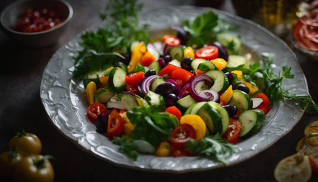 AI Generated. Colorful Vegetable Salad with Herbs on Plate