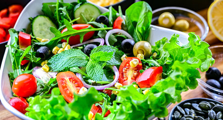 vegan green salad mix. Healthy food eating lifestyle. Organic nutrition for fitness