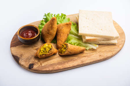 Bread samosa is a variation of regular samosa with same potato peas filling using sandwich bread slices for the outer covering