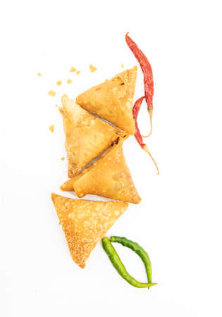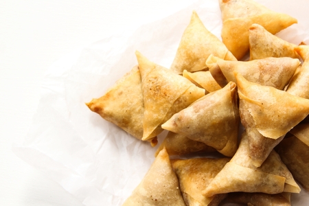 cocktail mini triangle samosa made using patti or strip, popular home made snack from India