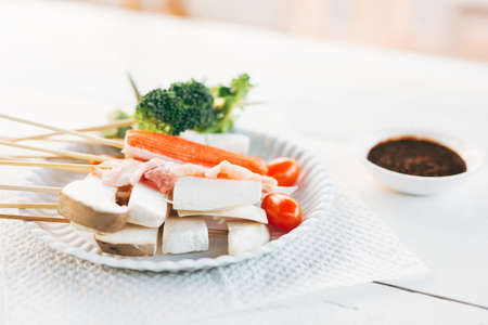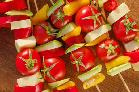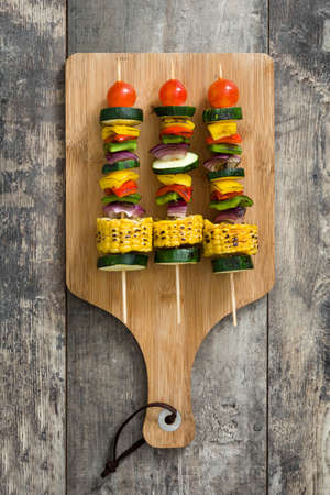 Vegetable skewers on wooden table
