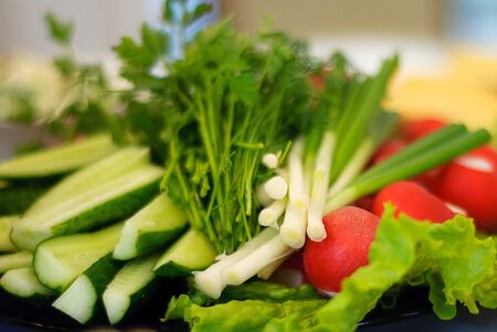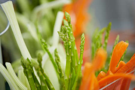 appetizer of fresh cucumbers, carrots, asparagus