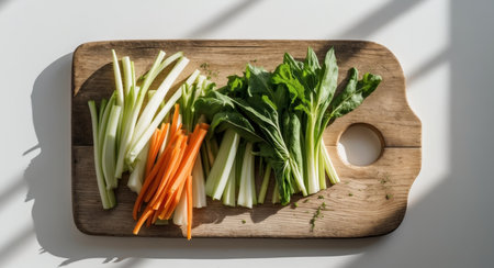 AI Generated. Freshly Chopped Vegetables on Wooden Cutting Boards Display