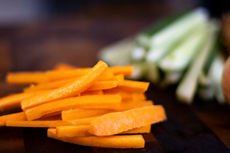 Sliced carrots and celery, healthy food, recipe colorful background. High quality photo