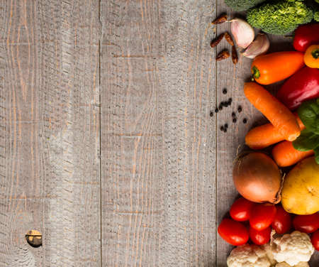 Healthy food and copy space, fresh vegetables, organic on a wooden background