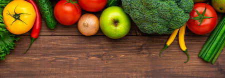 Assortment of fresh local vegetables. Top view. Healthy eating. Panorama