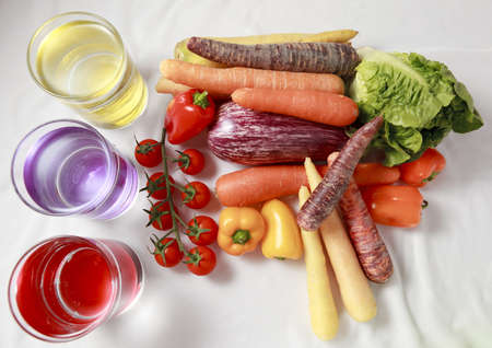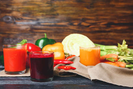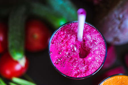 Freshly Made Vegetable Juices, Carrot, Beet. Vegetarian food. Healthy life.