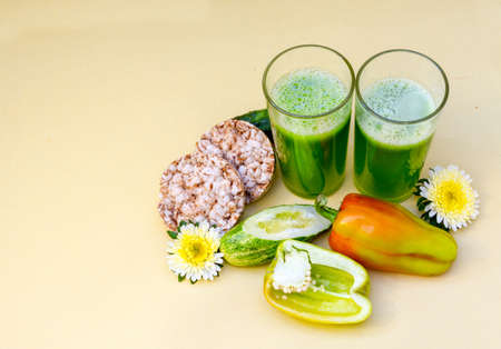 Healthy vegetable smoothie and juice on light backround. Fresh