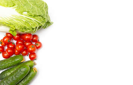 Fresh vegetables isolated on white background with copy space. Healthy food concept.