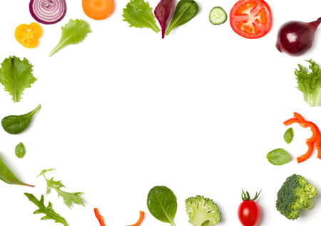 Frame of fresh vegetables on white background. Top view. Flat lay