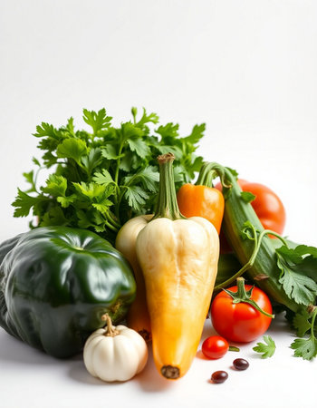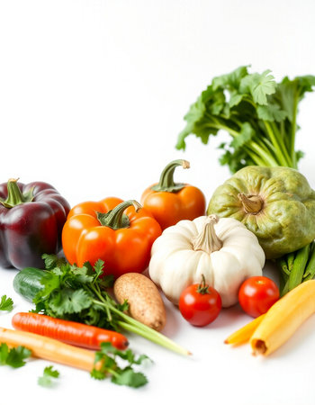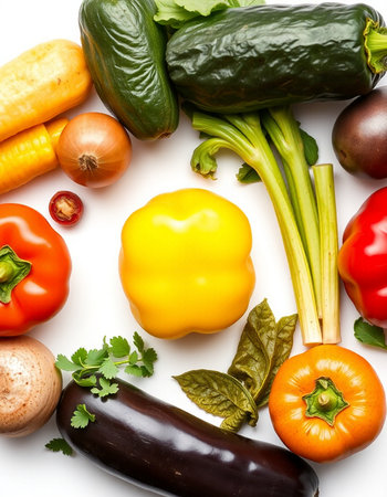 Fresh vegetables on a white background. Healthy eating. Vegetarian food.