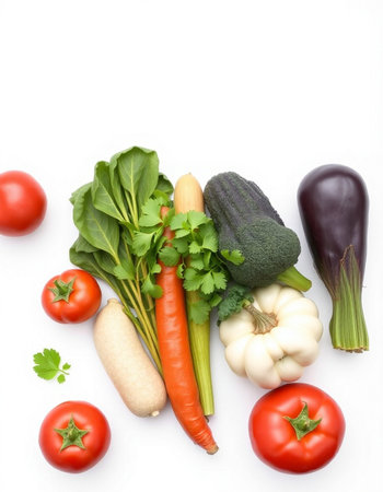 fresh vegetables isolated on white background with copy space for your text. Top view