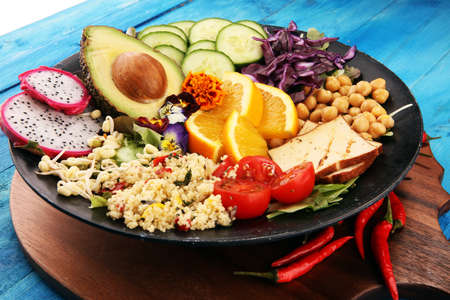 Healthy vegetarian balanced food concept,fresh vegetable salad, buddha bowl
