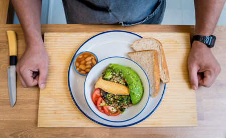 Healthy breakfast bowl with porridge and fresh vegetable salad