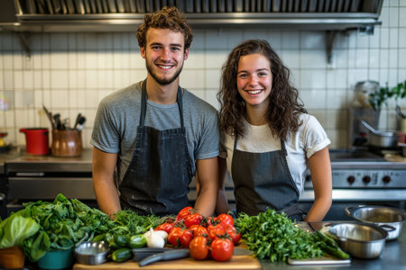 Cooking together young chefs prepare fresh ingredients in a cozy kitchen environment inspiring culinary creativity
