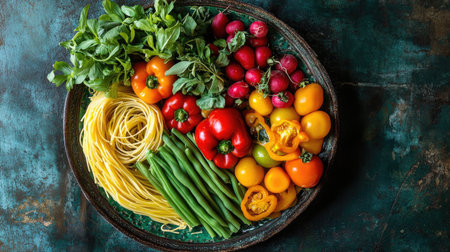 A beautifully arranged plate of vegan cuisine, showcasing vibrant vegetables and grains. AI generated.