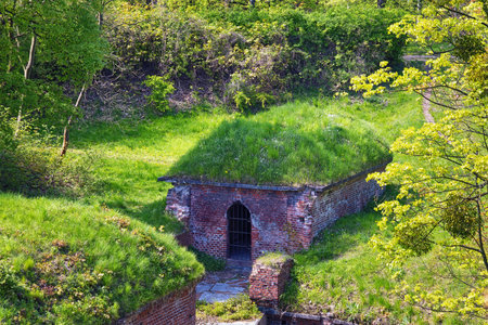 View of the historical fortifications on the Gradowa Mountain on a sunny day. Gdansk, Poland.