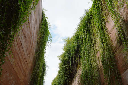 Green ivy in the tunnel of the castle in Riga, Latvia
