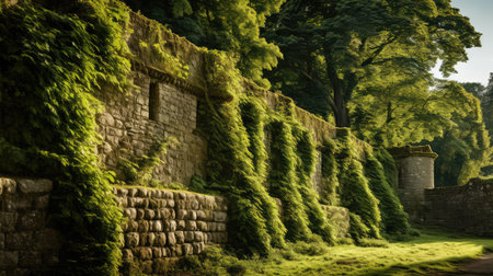 ivy-covered walls enclosing a monastery garden, created with generative ai