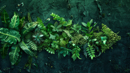 Moody lush plant botanical in tropical rainforest. Nature background