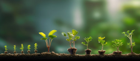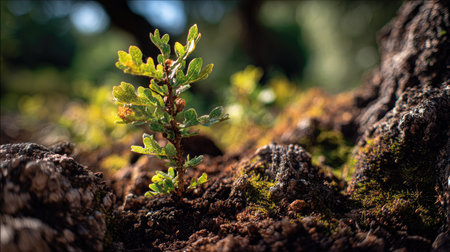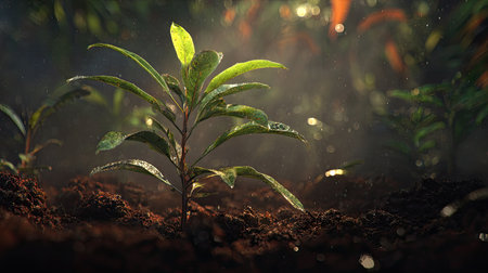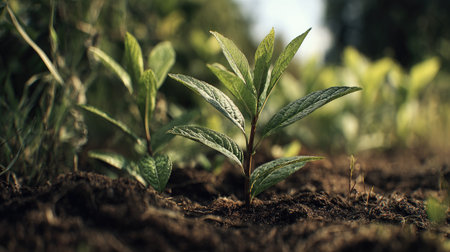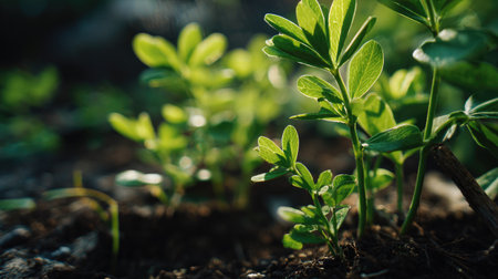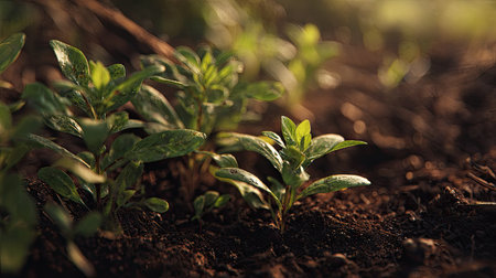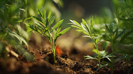 Delicate seedlings emerge from rich soil, highlighting nature's beauty. This image captures the essence of growth, vitality, and the peaceful ambiance of the natural world.