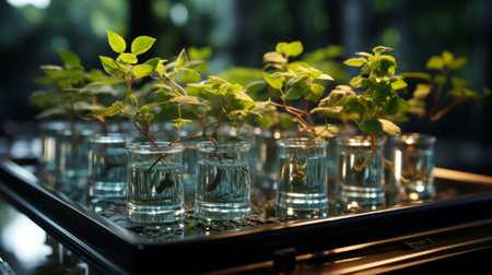 Verdant Small plants test tube garden. Life health. Generate Ai