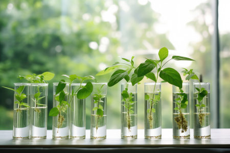 AI Generated. Growing saplings in test tubes showcasing different soil types and plant species