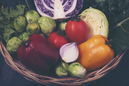 Fresh vegetables in a basket. Selective focus. Food background.