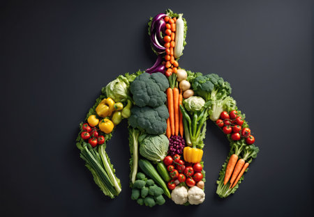 AI Generated. The human body is made of fresh vegetables fruits nuts and other healthy foods