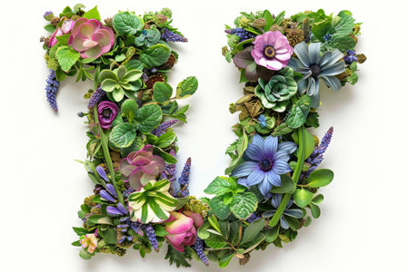 A lush corner border arrangement of various flowers and greenery on a white background, perfect for letter themed with flowers and greenery.