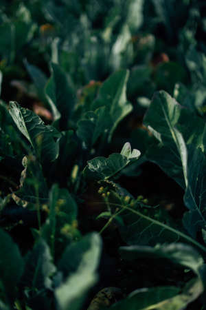Organic vegetable garden in the morning light. Selective focus.